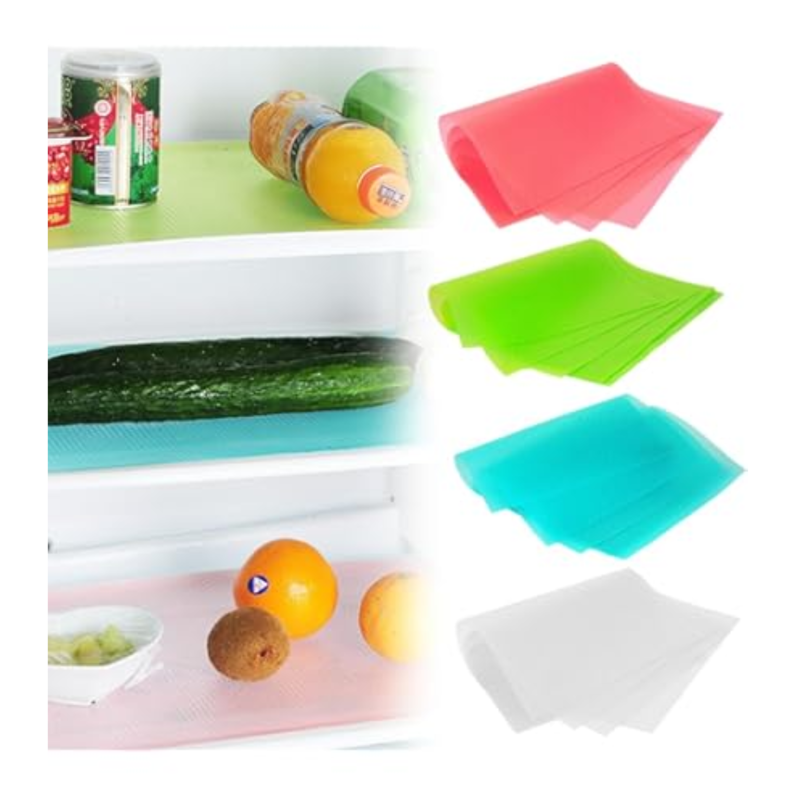 Estas alfombrillas son reutilizables, fáciles de recortar y adaptables a cualquier tipo de refrigerador. Además, sus colores variados agregan un toque de frescura mientras protegen tus alimentos y superficies.
