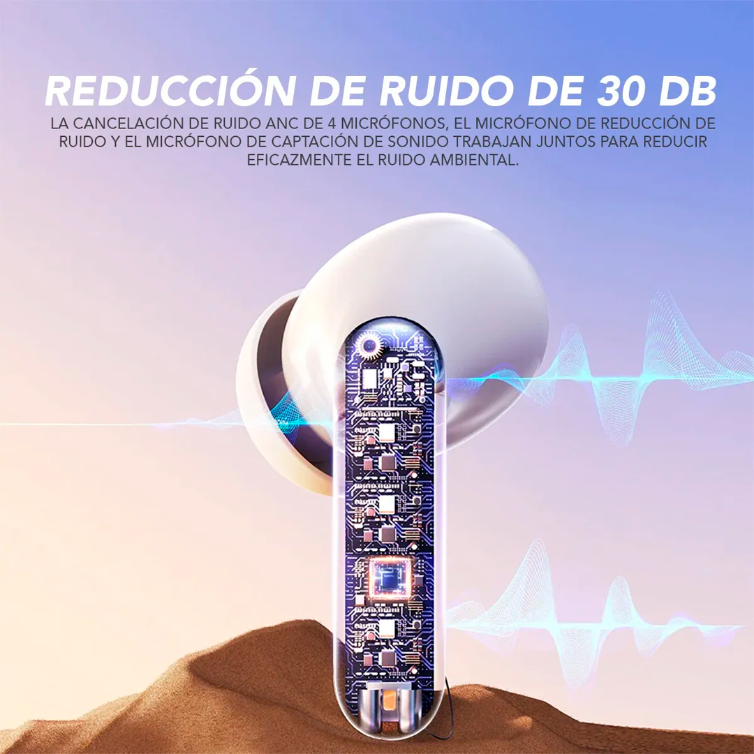 Cancelación activa de ruido ANC con 4 micrófonos, reducción de hasta 35 dB.