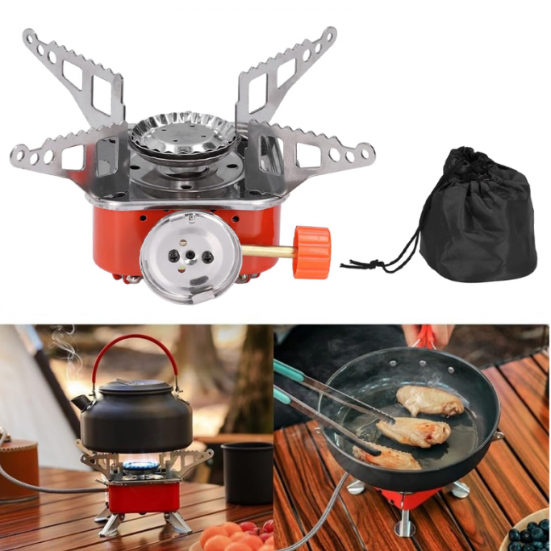 La Cocina Anafe Portátil de Mano para Camping y Pesca es un pequeño hornillo a gas o butano, diseñado para ser ligero, compacto y fácil de transportar. Ideal para actividades al aire libre como campamentos, pesca, excursiones o picnics, permite cocinar en cualquier lugar sin necesidad de electricidad. Su estructura metálica resistente, rápido encendido y diseño estable lo hacen seguro y eficiente. Algunos modelos incluyen control de llama y sistema de encendido piezoeléctrico (sin fósforos).