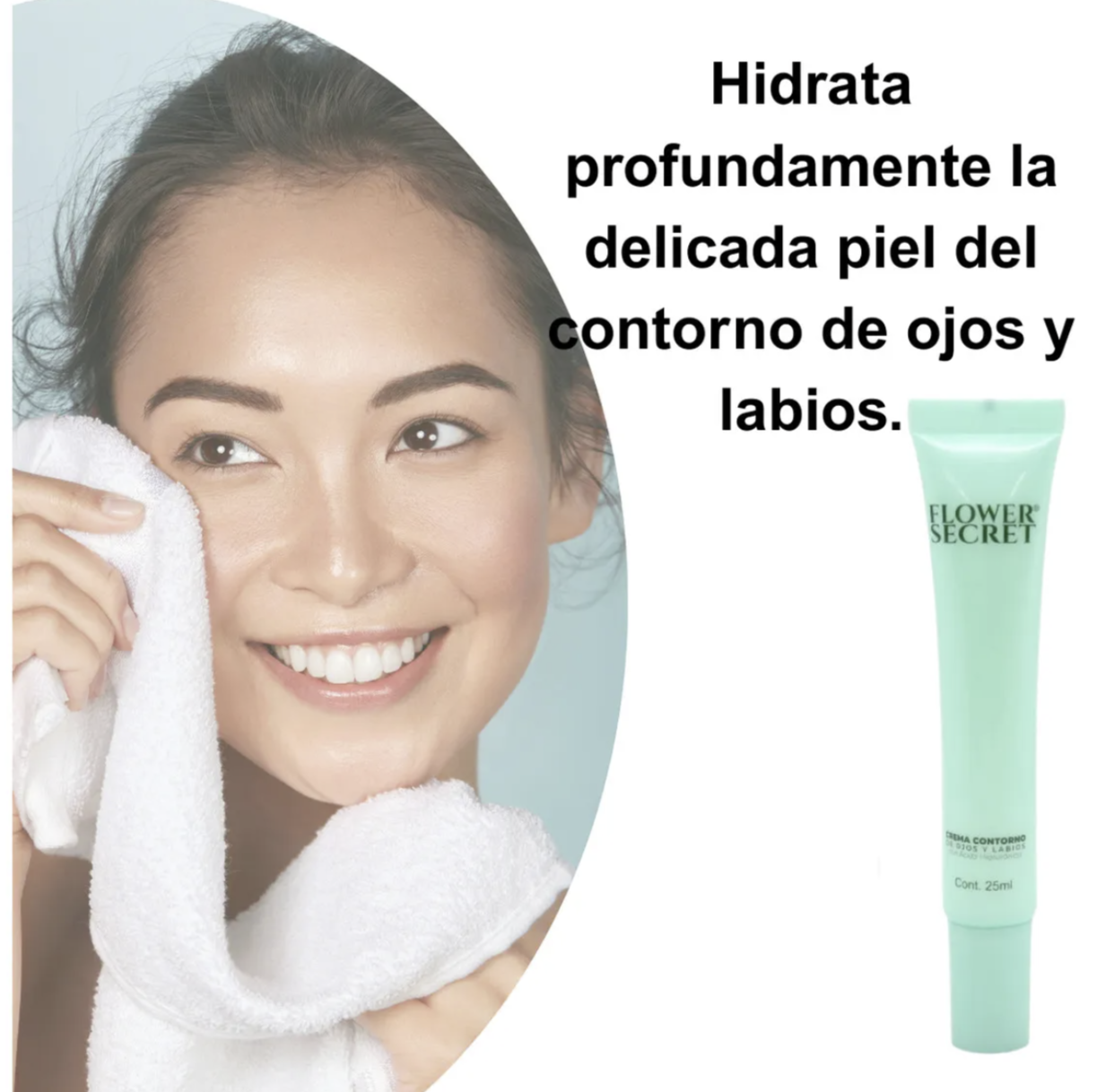 Descubre nuestra crema contorno de ojos y labios enriquecida con ácido hialurónico, diseñada para ofrecerte una hidratación profunda y combatir los signos de la edad.