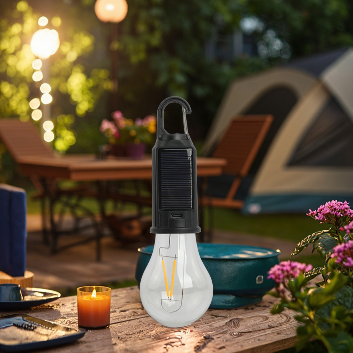 Transforma cualquier espacio en un rincón acogedor con esta práctica lámpara recargable con energía solar, perfecta para campamentos, terrazas, jardines, emergencias o iluminación portátil en el hogar.