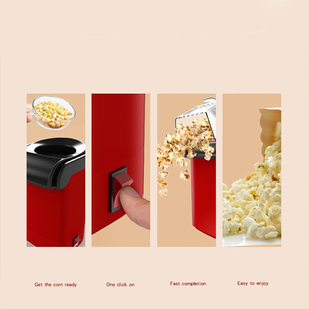 Diseño de aire caliente: todos los palomitas están listos en menos de 3 minutos, y esta maquinilla de palomitas se despliega más rápido que un microondas. La máquina de palomitas se despliega cada uno y cada uno de los núcleos de forma uniforme y rápida, hasta un 98% de velocidad de picado. Funcionamiento simple: Añade una sola cuchara de núcleos a la cámara principal utilizando la cuchara de medición, la cubierta transparente te permite ver todo el proceso. Una cámara de turbina de aluminio se calienta uniformemente y el aire se utiliza para expulsar el palomitas cuando está listo, con poco ruido. Una opción más saludable: utiliza un método de bombeo de aire caliente por lo que no requiere aceite, pops sin aceite para sólo 20 calorías, sin sabores artificiales, conservantes o sal añadida, los maíces se calientan uniformemente rápido, más saludable y seguro para el consumo en comparación con las microondas. Fácil de limpiar: se limpia rápida y simplemente con un deslizamiento rápido del interior mediante una toalla de papel o un paño. Pops con aire caliente, no aceite para un tratamiento de baja grasa, más saludable y más económico que la mayoría de microondas. Es un buen regalo para niños, adolescentes y amigos. Atención: es una máquina de palomitas de aire caliente en casa, no puede añadir directamente mantequilla y azúcar, después de que el sabor popcorn ha sido, puede añadir leche condensada, mantequilla, crema. Cuando el maíz está funcionando, la temperatura de la superficie interior será muy alta, evite tocar la superficie calentada.