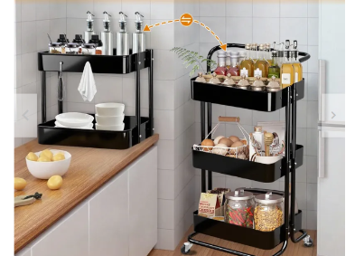 Este carrito con ruedas está elaborado con metal resistente para soportar hasta 30 kg. Tres cestas grandes y profundas brindan suficiente espacio para sus necesidades diarias, suministros para niños, suministros de oficina y lo demás. Tiene un mango ergonómico y se puede colocar en la cocina, la sala de estar, el baño, el estudio y otros lugares. Podrías usarlo para colocar artículos diarios, especias, artículos de tocador, libros y otras cosas. Mejora la limpieza de su hogar y no te preocupes por perder cosas.