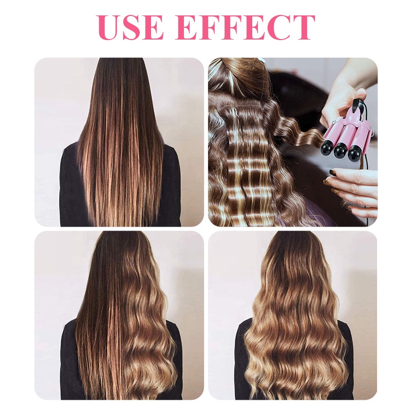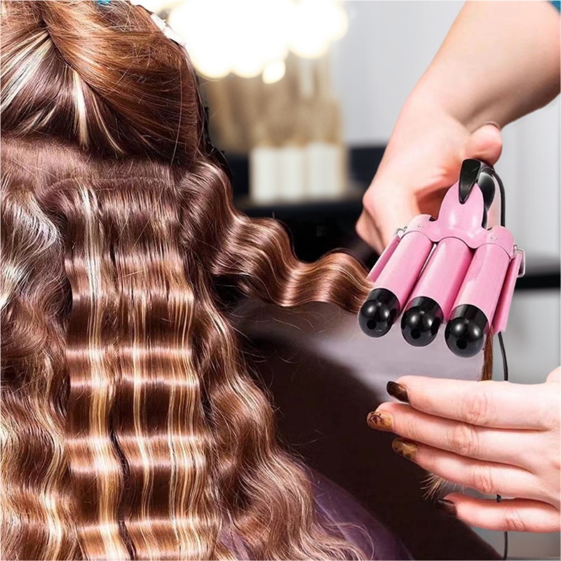 Transforma tu cabello liso en ondas profundas, definidas y con efecto “sirena” de manera rápida, fácil y duradera. Este rizador de tres tubos distribuye el calor de forma uniforme, creando ondas naturales con un acabado profesional sin dañar tu cabello.