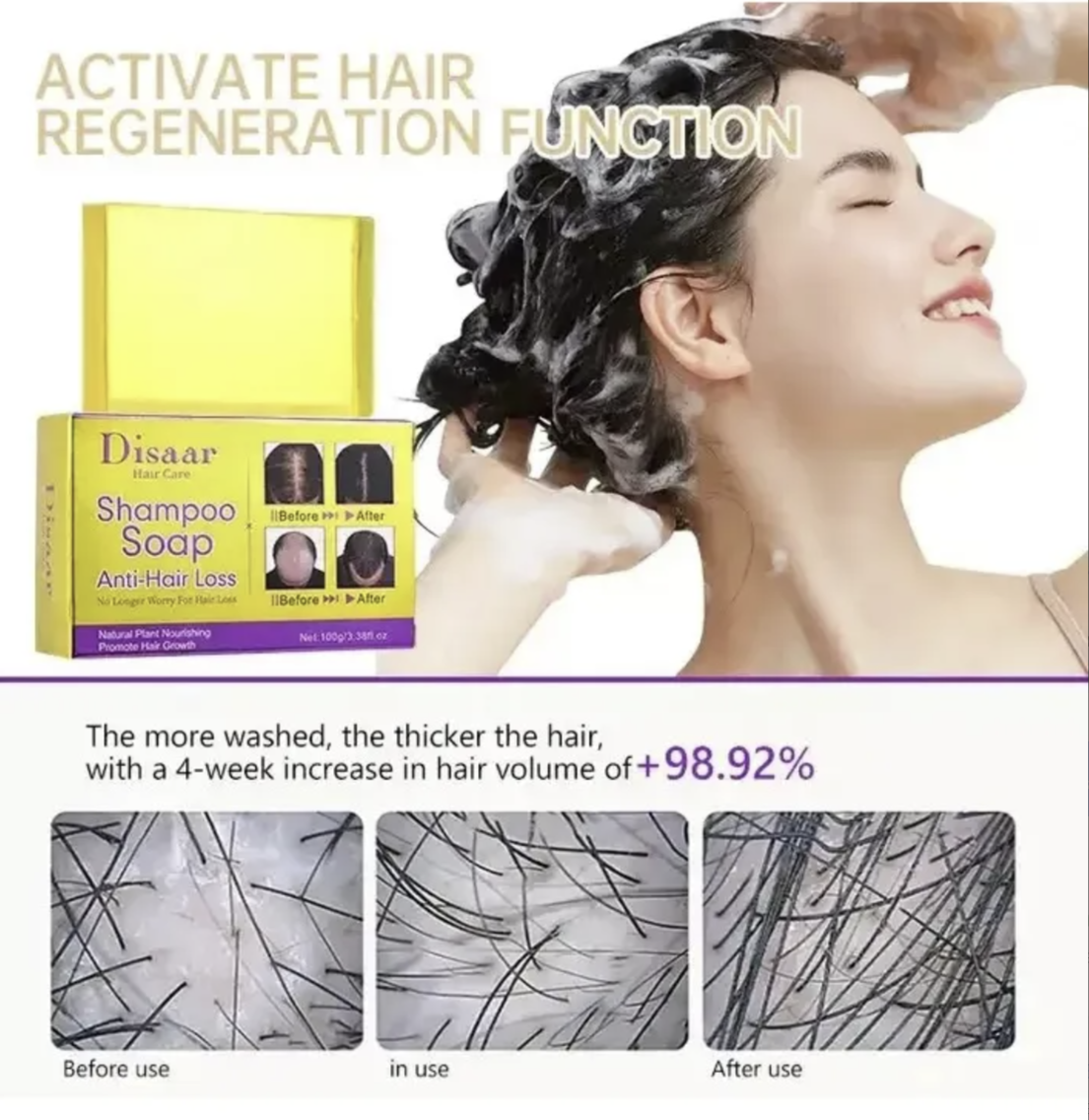 - Shampoo sólido, formulación anticaída para fortalecer el cabello.